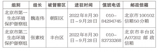 第二輪第四批北京市生態(tài)環(huán)境保護督察進駐一覽表