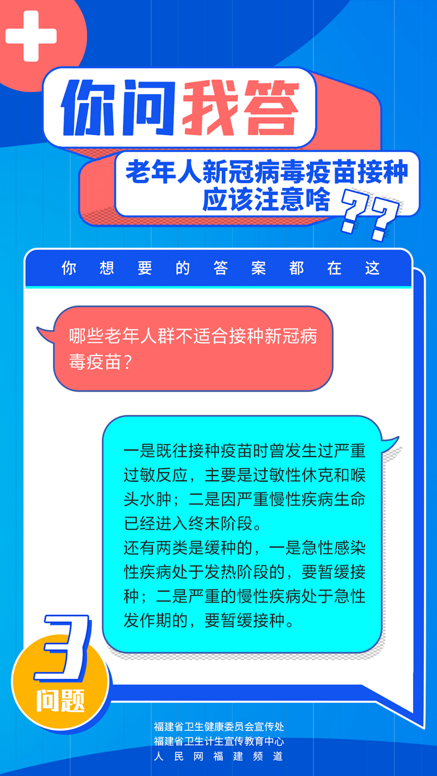 老年人接種疫苗是否安全?會有更強烈的不良反應(yīng)嗎?哪些老年人群不適合接種新冠病毒疫苗?你問我答,快問快答!老年人新冠病毒疫苗接種究竟應(yīng)該注意啥?