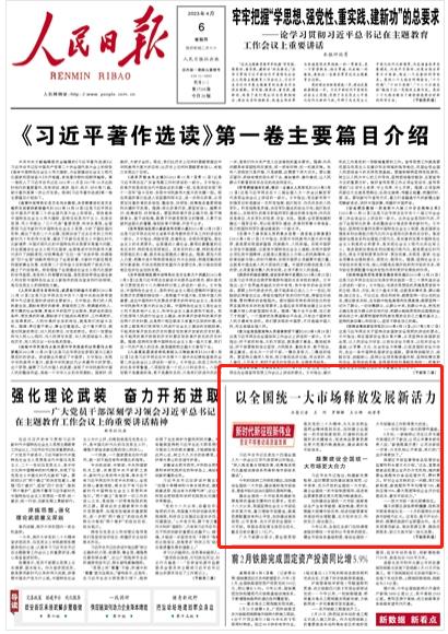 【人民日?qǐng)?bào)頭版關(guān)注湖南】以全國統(tǒng)一大市場(chǎng)釋放發(fā)展新活力