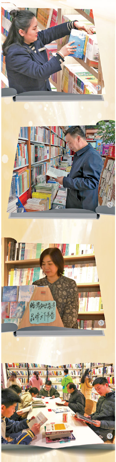 圖①:江蘇省淮安書房盱眙店主管張慧琳在整理書籍。許昌銀攝