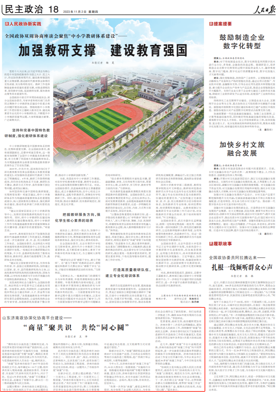 人民日報(bào)點(diǎn)贊濟(jì)南政協(xié)深化協(xié)商平臺(tái)建設(shè):“商量”聚共識(shí) 共繪“同心圓”