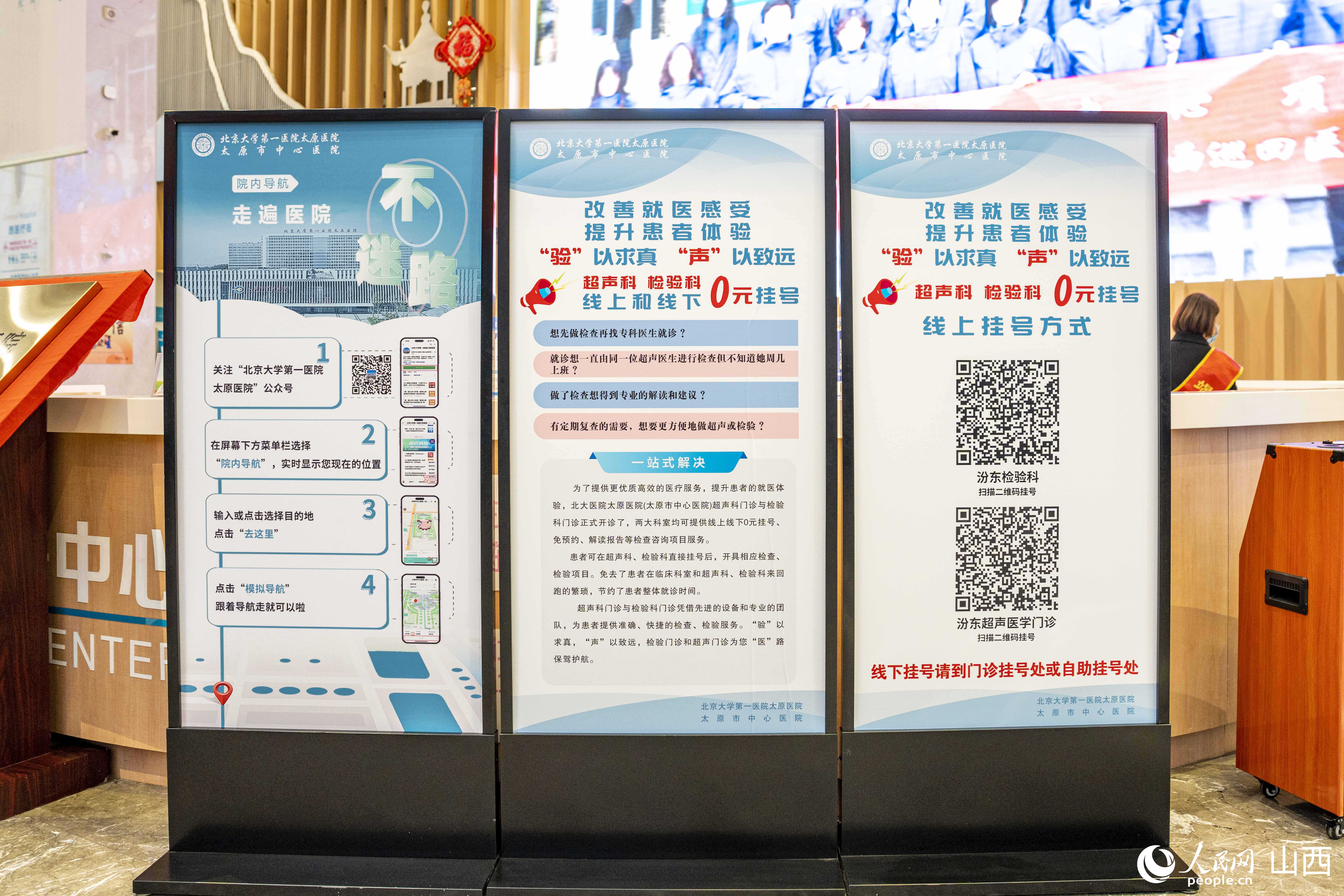 北大醫(yī)院太原醫(yī)院門診大廳設(shè)立相關(guān)內(nèi)容展板。人民網(wǎng) 盧鵬宇攝