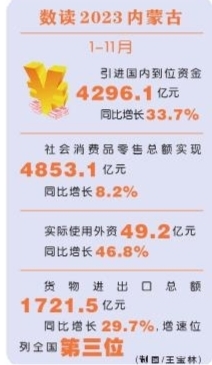 對(duì)外貿(mào)易增量提質(zhì)。2023年1-11月份,內(nèi)蒙古貨物進(jìn)出口總額1721.5億元,同比增長(zhǎng)29.7%,增速位列全國(guó)第三位。呼和浩特市、包頭市、烏蘭察布市獲批自治區(qū)服務(wù)外包示范城市。烏蘭察布市獲批國(guó)家加工貿(mào)易梯度轉(zhuǎn)移重點(diǎn)承接地。組織693家企業(yè)赴阿聯(lián)酋、沙特、蒙古國(guó)、俄羅斯等20個(gè)國(guó)家和地區(qū)開(kāi)展“蒙商絲路行”海外經(jīng)貿(mào)活動(dòng),達(dá)成貿(mào)易與投資合作協(xié)議總金額超332億元。新批復(fù)設(shè)立阿日哈沙特、阿爾山邊民互市貿(mào)易區(qū),二連浩特邊民互市貿(mào)易進(jìn)口商品落地加工試點(diǎn)啟動(dòng)。5個(gè)縣域外經(jīng)貿(mào)破零增量示范地區(qū)培育工作有序推進(jìn)。認(rèn)定自治區(qū)公共海外倉(cāng)培育對(duì)象7家。組織500余家企業(yè)參加第三屆消博會(huì)、第133屆廣交會(huì)、2023年服貿(mào)會(huì)等知名展會(huì)。