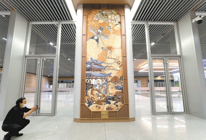 站內(nèi)包含有北京歷史文化元素的裝飾隨處可見。 本報(bào)記者 安旭東攝