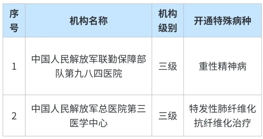 新開通特殊病種服務(wù)的定點醫(yī)療機構(gòu)