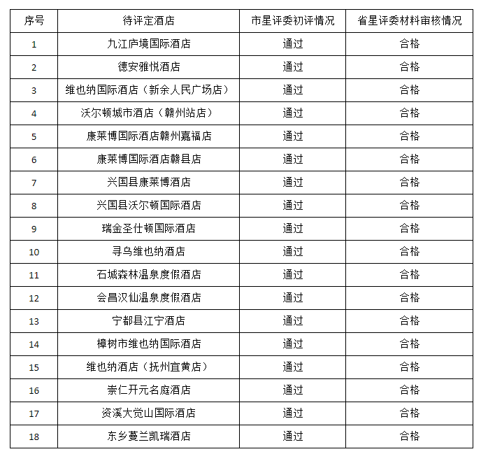 央廣網(wǎng)北京10月11日消息 據(jù)江西省文化和旅游廳消息,江西省星評委依據(jù)《旅游飯店星級的劃分與評定》(GB/T14308-2010)國家標準的相關(guān)要求,經(jīng)過相關(guān)酒店企業(yè)申請,相關(guān)評定委員會評定,現(xiàn)將待評四星級旅游飯店的十八家酒店進行評定前公示。