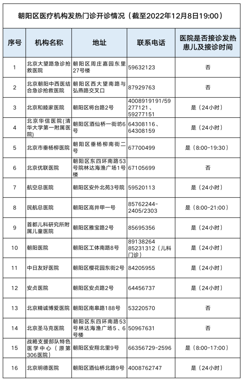 最新!朝陽區(qū)開設(shè)發(fā)熱門診醫(yī)療機構(gòu)名單公布