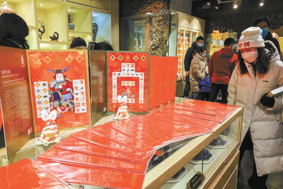 今年新推出的故宮文創(chuàng)郵票等琳瑯滿目的兔年文創(chuàng)產(chǎn)品上架。本報記者 鄧偉攝