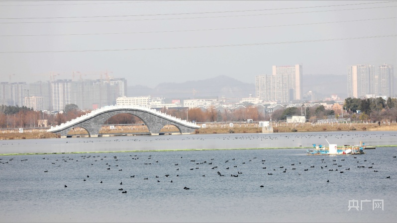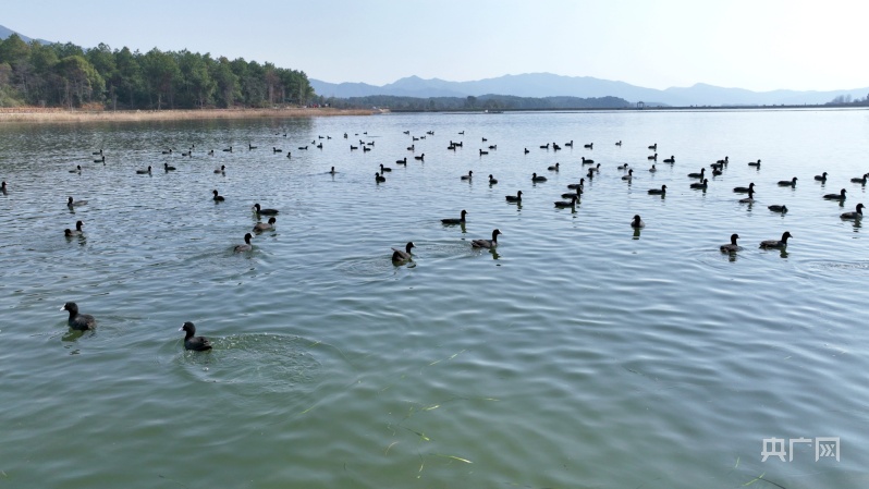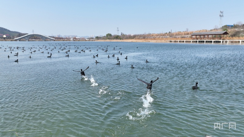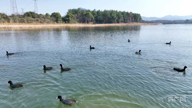 江西分宜:數(shù)百只白骨頂雞“做客”濕地公園
