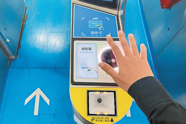 不用刷卡、不用刷碼,只需伸出手掌,就能刷開地鐵閘機(jī)?!八⒄啤背塑囆履J饺缃裨诘罔F大興機(jī)場(chǎng)線實(shí)現(xiàn)了。記者10日在現(xiàn)場(chǎng)看到,錄入掌紋、實(shí)名信息授權(quán)并開通微信刷掌支付后,乘客只需要找到帶有圓環(huán)標(biāo)志的刷掌閘機(jī),將掌心面對(duì)圓環(huán)內(nèi)的識(shí)別區(qū)進(jìn)行識(shí)別,閘機(jī)便會(huì)自動(dòng)打開。本報(bào)記者 李博文 鄧偉攝