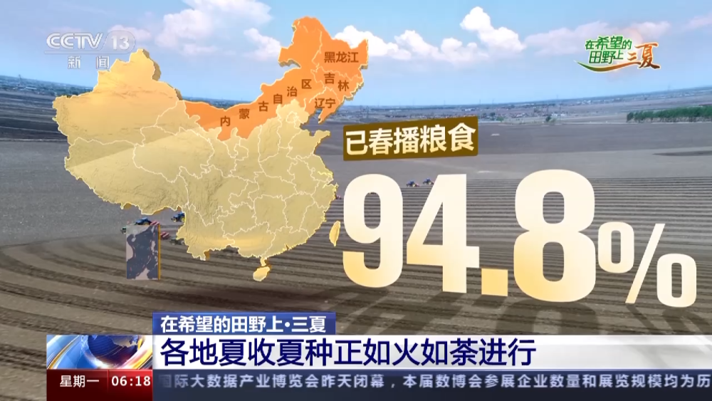 而在東北地區(qū),黑龍江、吉林、遼寧、內(nèi)蒙古春播糧食已接近尾聲,其中玉米的播種基本結(jié)束,大豆播種接近終點(diǎn),水稻栽插則近九成。