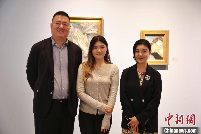 6月底,在北京舉辦個(gè)人藝術(shù)展的臺(tái)灣青年于飛(中)與父母。中新社記者 李雪峰 攝