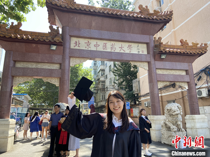 圖為劉沂柔在北京中醫(yī)藥大學(xué)校門前留影。 中新社發(fā) 受訪者供圖
