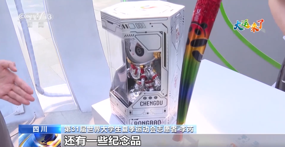 第31屆世界大學生夏季運動會志愿者 李芮:進入小站可以看到志愿者工作臺,展示了本次大運會的一些吉祥物,還有一些紀念品,為本次大運會準備的一些宣傳手冊。我們還準備了急救包和飲用水,以備不時之需。
