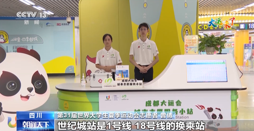 總臺記者 韓民權:我現在是在成都市最繁華的地段春熙路商圈,這里匯集休閑娛樂、美食購物于一體,是市民游客向往的打卡地,隨著大運會的日益臨近,為了讓大家更好地了解和關注大運會這場青春盛會,感受城市魅力,這里專門設置了一處具有熊貓造型的城市志愿服務小站,小站都有哪些特色和服務?我們一起去看一看。