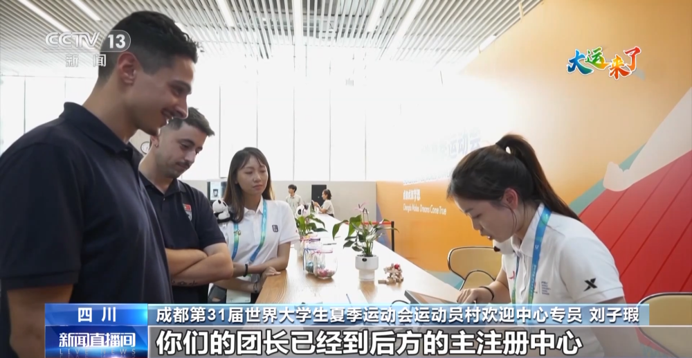成都第31屆世界大學生夏季運動會運動員村歡迎中心專員 劉子瑕:你們的團長已經(jīng)到后方的主注冊中心為你們辦理身份注冊卡,之后你們便會拿到身份注冊卡就可以在大運村內(nèi)通行。
