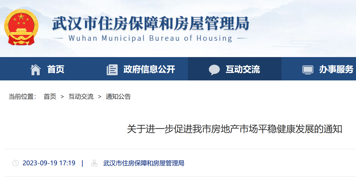 央廣網(wǎng)北京9月20日消息 據(jù)武漢市住房保障和房屋管理局網(wǎng)站消息,9月19日,武漢市房管局發(fā)布《關(guān)于進一步促進我市房地產(chǎn)市場平穩(wěn)健康發(fā)展的通知》(以下簡稱《通知》),《通知》顯示,自2023年9月19日起,武漢市取消二環(huán)線以內(nèi)住房限購政策,滿足居民剛性和改善性購房需求。