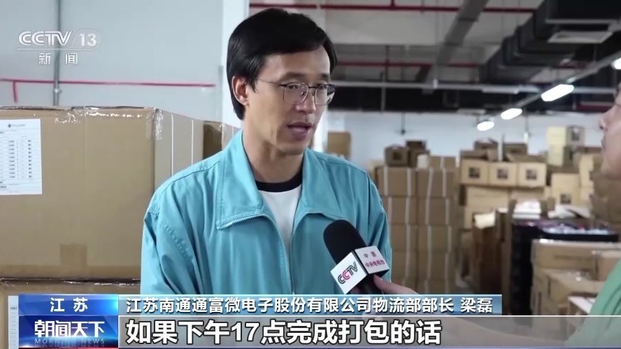 江蘇南通通富微電子股份有限公司物流部部長 梁磊:我們當(dāng)天的出貨,如果17點完成打包的話,當(dāng)天晚上12點前,基本就能到達深圳??蛻舻囊恍┨丶奔?,我們甚至凌晨就能派送到位。