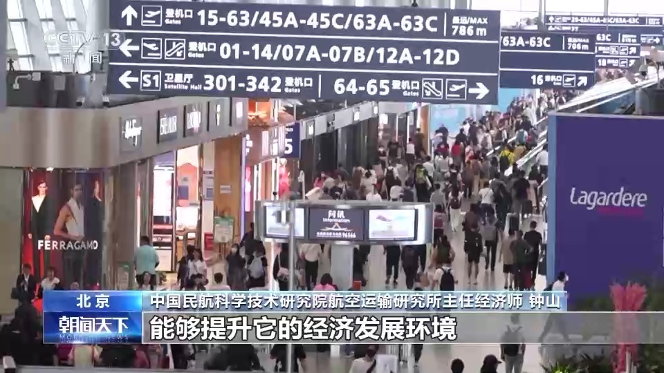 中國民航科學(xué)技術(shù)研究院航空運輸研究所主任經(jīng)濟師 鐘山:通過我們這種“干支通、全網(wǎng)聯(lián)”以及通程航班的模式,能夠讓我們?nèi)⑺木€城市的旅客,融到整個國家的經(jīng)濟社會建設(shè)中,能夠提升它的經(jīng)濟發(fā)展環(huán)境。特別是從統(tǒng)一大市場的開放角度來看,這個是最終能夠促進我們國內(nèi)市場的銜接。