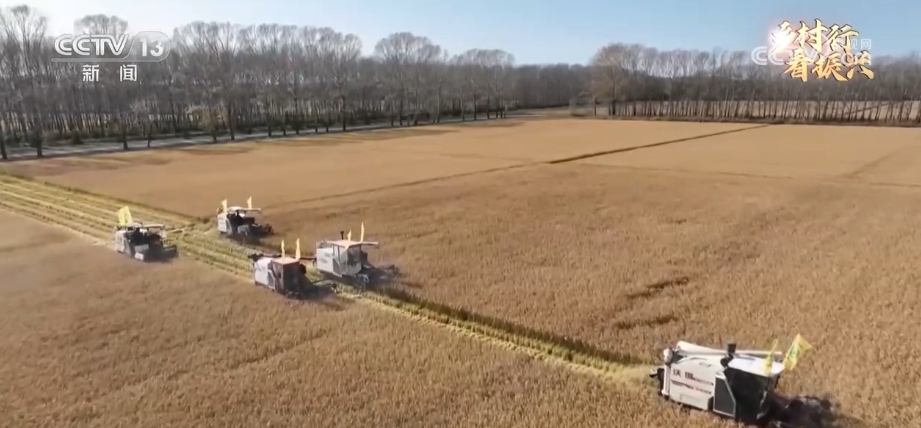央視網(wǎng)消息:眼下,正是水稻收獲時節(jié)。在黑龍江墾區(qū)軍川農(nóng)場的水稻收獲現(xiàn)場,5臺水稻收割機正在協(xié)同進(jìn)行收割作業(yè),趁著晴好天氣搶收水稻。