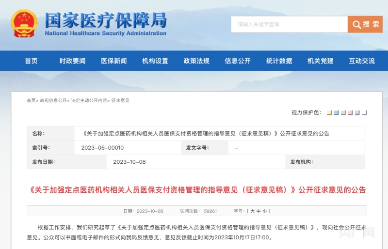 根據(jù)國(guó)家醫(yī)保局發(fā)布的公告,征求意見(jiàn)反饋截止時(shí)間為2023年10月17日17:00。