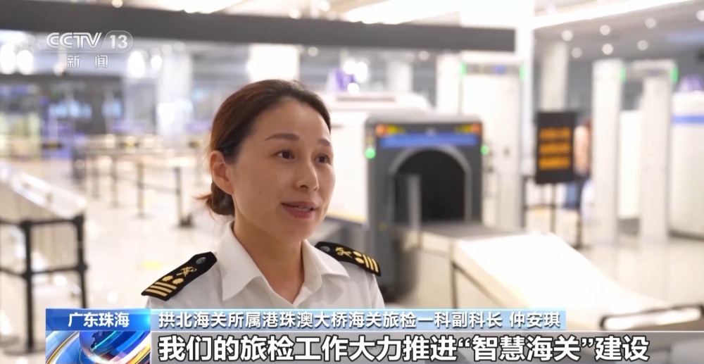 拱北海關(guān)所屬港珠澳大橋海關(guān)旅檢一科副科長 仲安琪:我們的旅檢工作大力推進“智慧海關(guān)”建設(shè),在智能CT機、高低溫探測儀等智慧旅檢監(jiān)管設(shè)備的輔助下,我們監(jiān)管更加“耳聰目明”。此外,我們還通過信息互換、視頻共享、安保互助等手段加強與港澳海關(guān)、聯(lián)檢單位、大橋管理部門等單位的應急處突合作,保障人流高峰時段旅客高效通關(guān)。