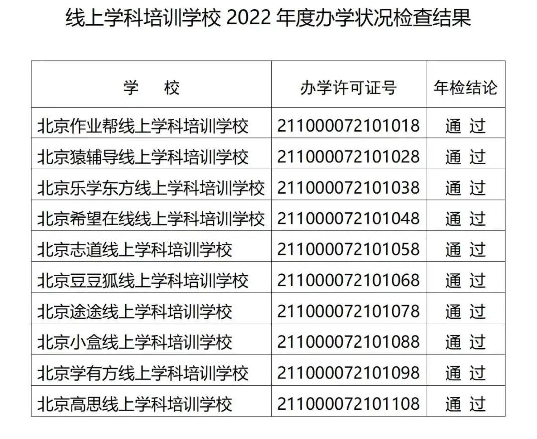 北京市教委公布2022年線上學科培訓學校辦學評估結果 10家通過