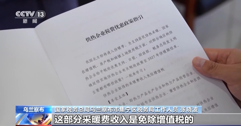 國家稅務(wù)總局烏蘭察布市集寧區(qū)稅務(wù)局工作人員 張曉波:向居民供熱取得的這部分采暖費收入是免除增值稅的,為了支持企業(yè)發(fā)展,也免除“房土”兩稅。