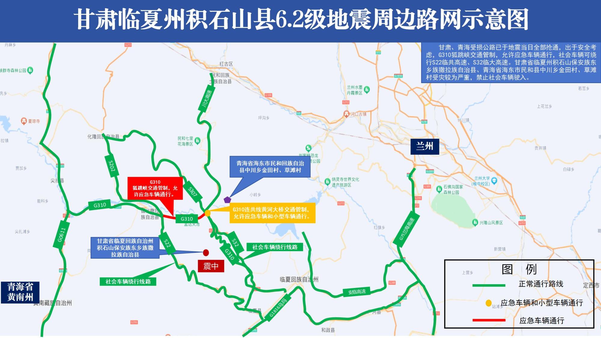 甘肅臨夏州積石山縣6.2級(jí)地震周邊路網(wǎng)示意圖(圖片來源:交通運(yùn)輸部)