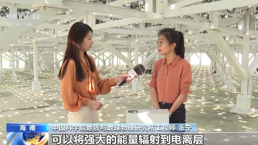 中國科學院地質(zhì)與地球物理研究所研究員 樂新安:三亞主站,我們有發(fā)射接收功能。在海南島西北的儋州和東北的文昌還有兩個接收站,形成了“一發(fā)三收”的非相干散射雷達系統(tǒng)??梢院唵卫斫鉃榫褪且慌_面向太空的“超級CT”,就能相當于同時得到三個CT切面,更好地對整個空間環(huán)境的立體狀態(tài)進行監(jiān)測。三亞非相干散射雷達是我們國家地基空間環(huán)境探測技術的一個重大突破,填補了我們國內(nèi)在地基電離層探測上大裝置的一個空白。