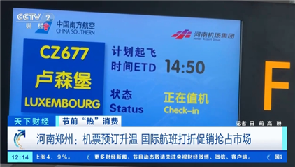 國際航班方面,近期隨著出境游需求的增加,部分航空公司加密和新開鄭州至盧森堡、米蘭以及濟州等地的國際航線,上座率也穩(wěn)步上升。部分航空公司還推出了線路打折套票,搶占節(jié)前市場。