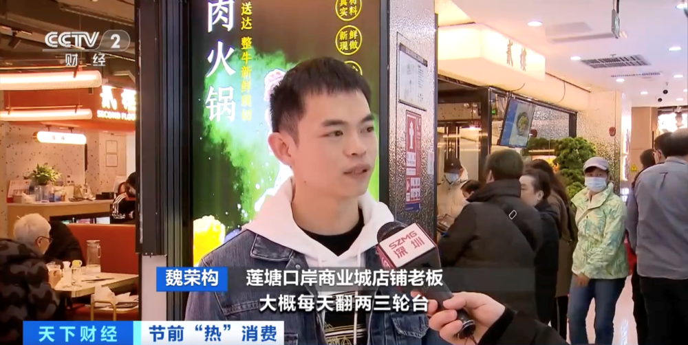 廣東深圳羅湖區(qū)某餐飲店店長 陳楚姍:我們這里有90%都是香港客戶,平均一天280多張臺到300張臺是沒有問題的。這個月營業(yè)額比上個月提升了30%多 。