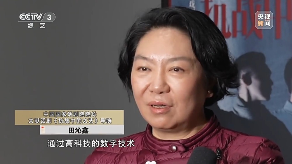 中國(guó)國(guó)家話劇院院長(zhǎng) 文獻(xiàn)話劇《抗戰(zhàn)中的文藝》導(dǎo)演 田沁鑫:在舞臺(tái)方面,也是打破了時(shí)空的界限,通過(guò)高科技的數(shù)字技術(shù),影視化的多機(jī)位多角度的拍攝手法,將裝置影像藝術(shù)和戲劇表演藝術(shù)相融合,以戲劇電影的方式講好中國(guó)故事。