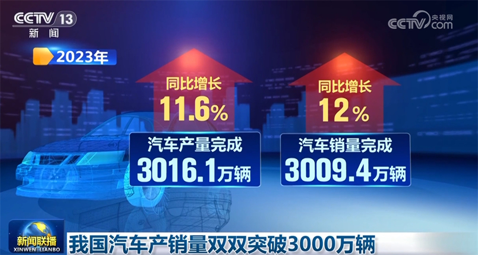 中國(guó)汽車(chē)工業(yè)協(xié)會(huì)1月11日發(fā)布的數(shù)據(jù)顯示,2023年,我國(guó)汽車(chē)產(chǎn)銷(xiāo)量首次雙雙突破3000萬(wàn)輛,創(chuàng)歷史新高。
