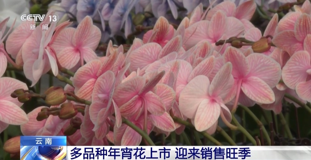 在云南,不同類型的年宵花也開始大量上市。在玉溪江川區(qū)九溪鎮(zhèn)的花卉大棚里,整齊擺放的大花蕙蘭競相開放。大花蕙蘭可單獨擺放,也可制作成胸花等小型花藝,特別是瓶插期長達(dá)45天,成為這段時間的暢銷花。