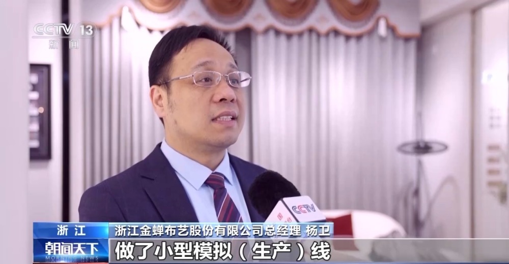 浙江金蟬布藝股份有限公司總經(jīng)理 楊衛(wèi):剛開始,父輩們會(huì)覺得投資好大,它效果怎么樣?然后我列了各種數(shù)據(jù)做了小型模擬生產(chǎn)線,把這些結(jié)果給父親看,最后父親覺得確實(shí)應(yīng)該走智能化的道路,然后我們就更大規(guī)模投建整個(gè)的智能工廠。