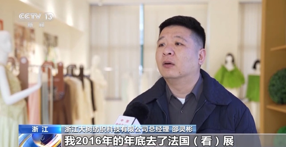 浙江大樹紡織科技有限公司總經(jīng)理 邵靈彬:我2016年的年底去了法國看展,基本上是奢侈品買面料的一個(gè)展會(huì)。我當(dāng)時(shí)給自己設(shè)的一個(gè)夢想,10年之內(nèi)我想進(jìn)展會(huì)。