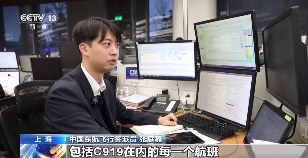 晚上10點,C919國產(chǎn)大飛機(jī)值班簽派員張庭磊的工作臺上,多個顯示屏不斷更新信息,首次參與春運,和機(jī)組安全飛行息息相關(guān)的氣象、燃油、線路等核心數(shù)據(jù),正在加速度“跑起來”。