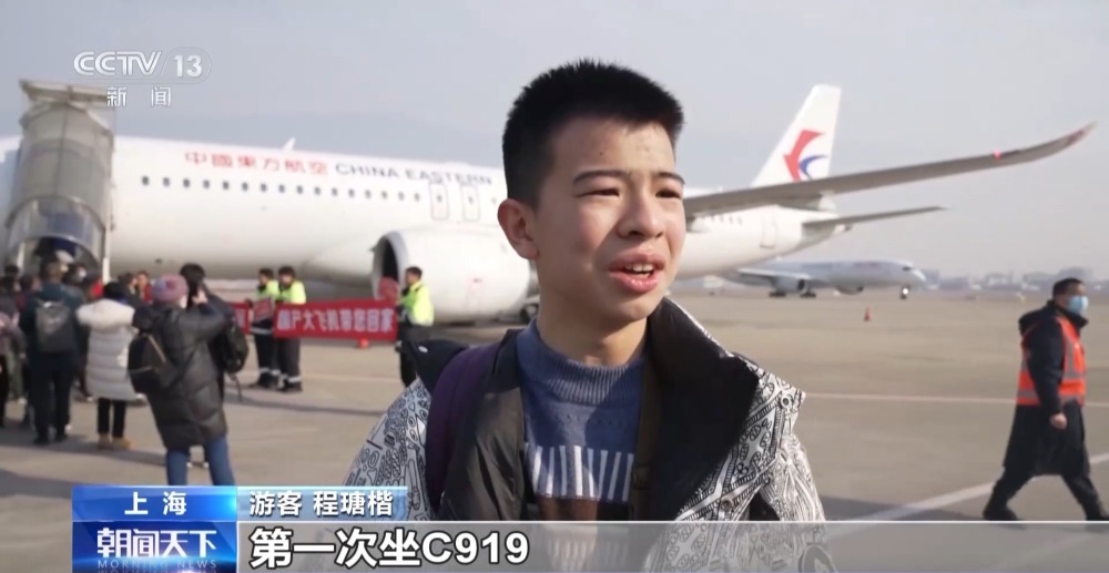 游客 程瑭楷:實在是太激動了,第一次坐C919,因為這是我們自己研發(fā)的飛機(jī),它的流線型結(jié)構(gòu),還有起落架、引擎,真的太漂亮了。