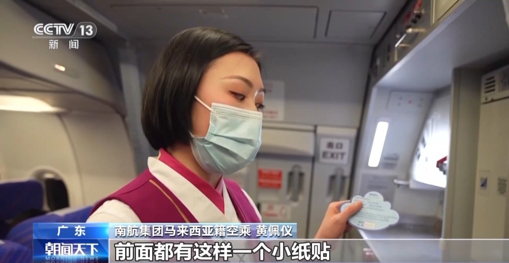 南航集團(tuán)馬來西亞籍空乘 黃佩儀:現(xiàn)在又到了春運的時期,我們領(lǐng)資料箱的時候,特地問一下能不能多給我們兩包,盡量保證每個睡覺的旅客,前面都有這樣一個小紙貼。