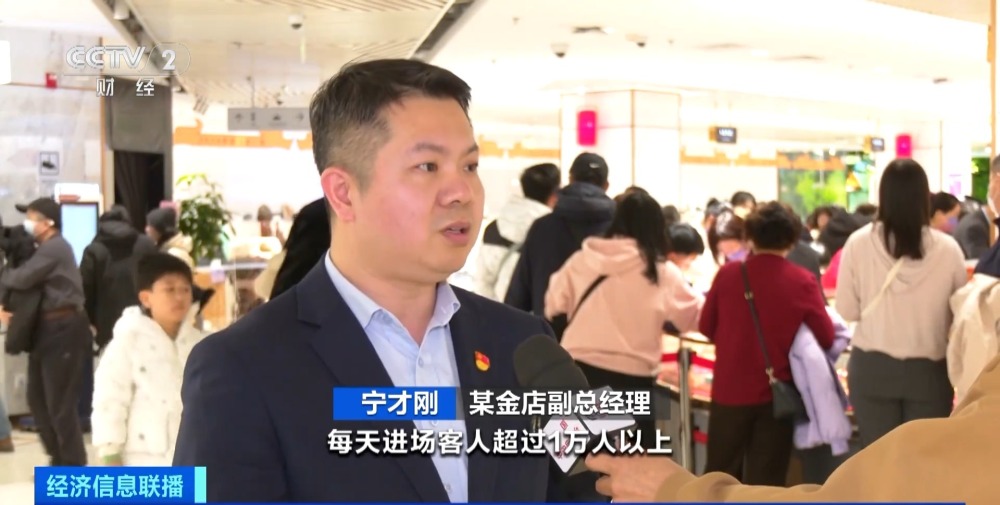 某金店副總經(jīng)理 寧才剛:每天進(jìn)場的客人非常多,我們總店每天進(jìn)場的客人超過1萬人。從單個品類來看,轉(zhuǎn)運(yùn)等非常受歡迎,每天的銷售量都是幾千件以上。