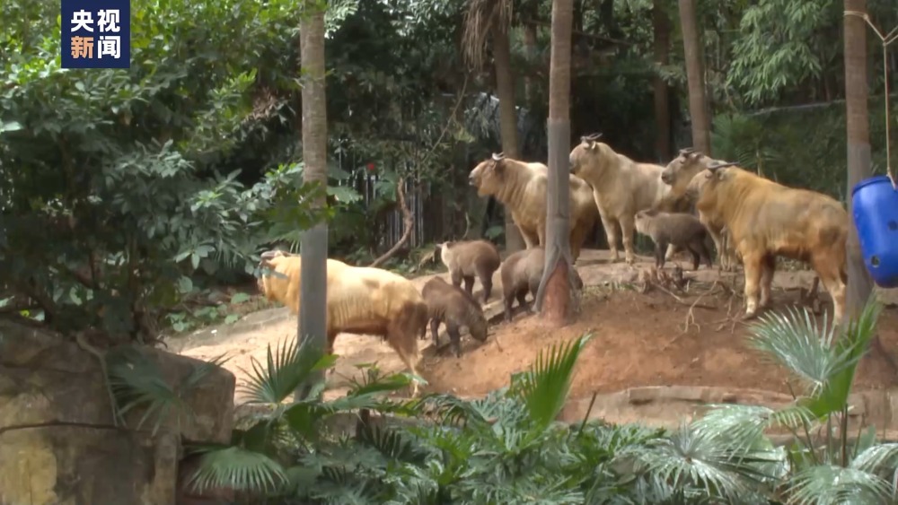 金毛羚牛是我國(guó)一級(jí)保護(hù)動(dòng)物。近日,在廣州長(zhǎng)隆野生動(dòng)物世界,一對(duì)雙胞胎金毛羚牛幼崽跟隨媽媽順利回到族群。