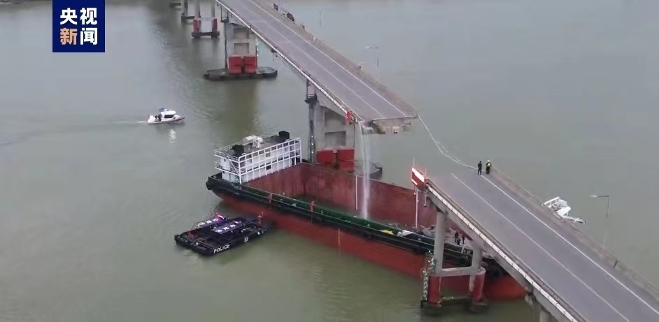 廣州瀝心沙大橋遭撞擊(圖片來源:央視新聞)