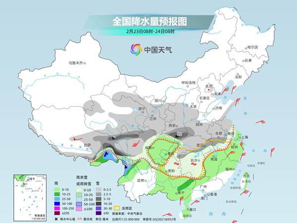 今天(2月23日),我國中東部等地大范圍雨雪持續(xù),降水強(qiáng)度繼續(xù)減弱,不過陜西南部、湖北東部和南部等地部分地區(qū)仍有大雪,局地暴雪,湖南、貴州等地有凍雨。明后天,北方大部降雪停歇,南方仍有雨雪天氣。預(yù)計(jì)南方多陰雨的天氣格局將延續(xù)至月底,大部地區(qū)氣溫也持續(xù)低迷,公眾春運(yùn)出行需注意防范。