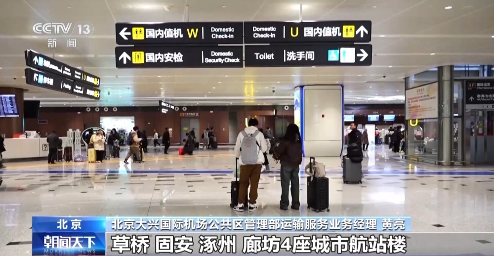 北京大興國際機場公共區(qū)管理部運輸服務業(yè)務經(jīng)理 黃亮:大興機場投運4年多來,草橋、固安、涿州、廊坊4座城市航站樓累計服務旅客超135萬人次。京雄高速和津興城際鐵路開通,目前每日開行列車26對,覆蓋北京、天津、雄安、霸州、固安、唐山等區(qū)域;通過鐵路換乘,大興機場兩小時地面交通圈可以覆蓋京津冀地區(qū)主要城市。