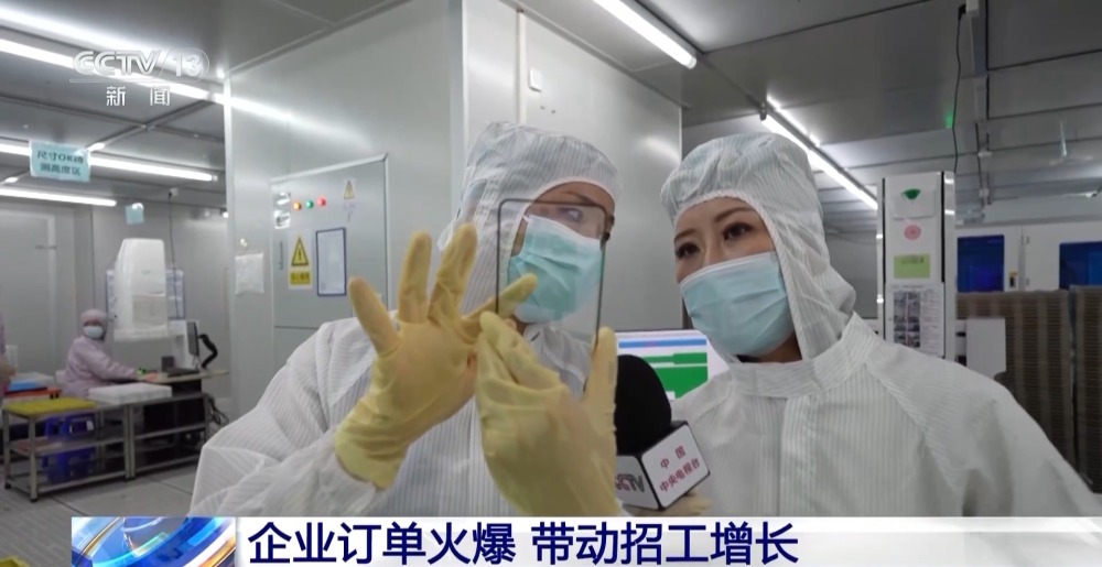 總臺央視記者 唐蕾:我手中的這塊玻璃就是智能手機用到的蓋板,我所在的這條生產線每分鐘能夠產出一百多件,這家企業(yè)全年的產量達到了18.5億件,全部的玻璃連起來可以繞地球七圈。