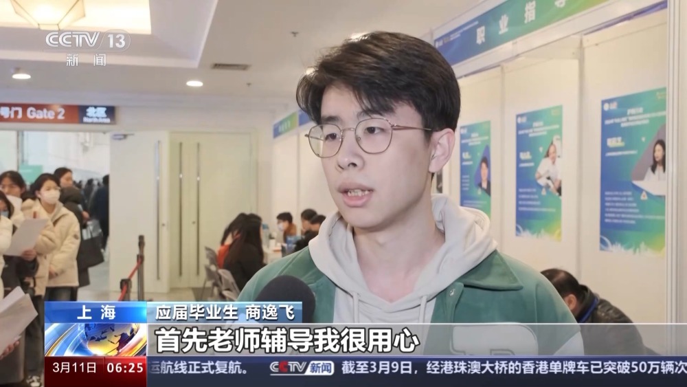 應屆畢業(yè)生 商逸飛:今天職業(yè)指導,首先老師輔導我很用心,然后我也能夠了解很多關于我這個專業(yè)的就業(yè)方向的問題,我覺得就業(yè)指導對于我們這些應屆畢業(yè)生來說很重要。
