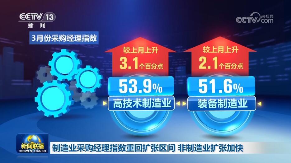 中國物流與采購聯(lián)合會、國家統(tǒng)計局服務(wù)業(yè)調(diào)查中心3月31日公布3月份中國采購經(jīng)理指數(shù)。制造業(yè)采購經(jīng)理指數(shù)重回擴(kuò)張區(qū)間,景氣水平明顯提升,非制造業(yè)繼續(xù)加快擴(kuò)張。