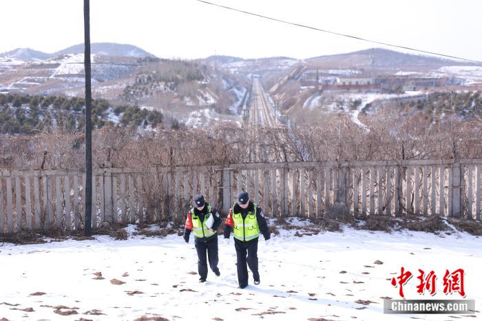 春運期間,永清站派出所小李和老劉認真巡視線路,確保線路絕對安全。蔡中元 攝