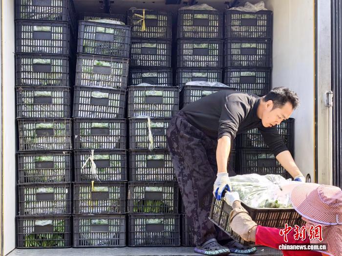 近日,廣東臺山市北陡鎮(zhèn),經(jīng)打包處理好的鮮嫩番薯葉通過冷藏車銷往廣州、武漢等地。李曉春 攝